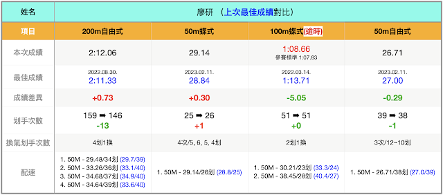媽媽許久沒陪同觀賽,這次看到成績真的是氣炸鍋;當然,我頭兩天也很生氣,覺得哥哥廖研很不用心...後來才了解可能是感冒所以體況受到影響。之後廖研表示,有些項目游完50公尺就感覺累、100公尺後還有手腳麻麻的感覺,而100蝶那項,上岸時突然反胃想吐、差點噴出來🤮,幸好吞回去了😂。聽說現場還有些小朋友也生病請假,不過我們家這兩位大神是因為出發前夜「吹電扇」吹出病的。